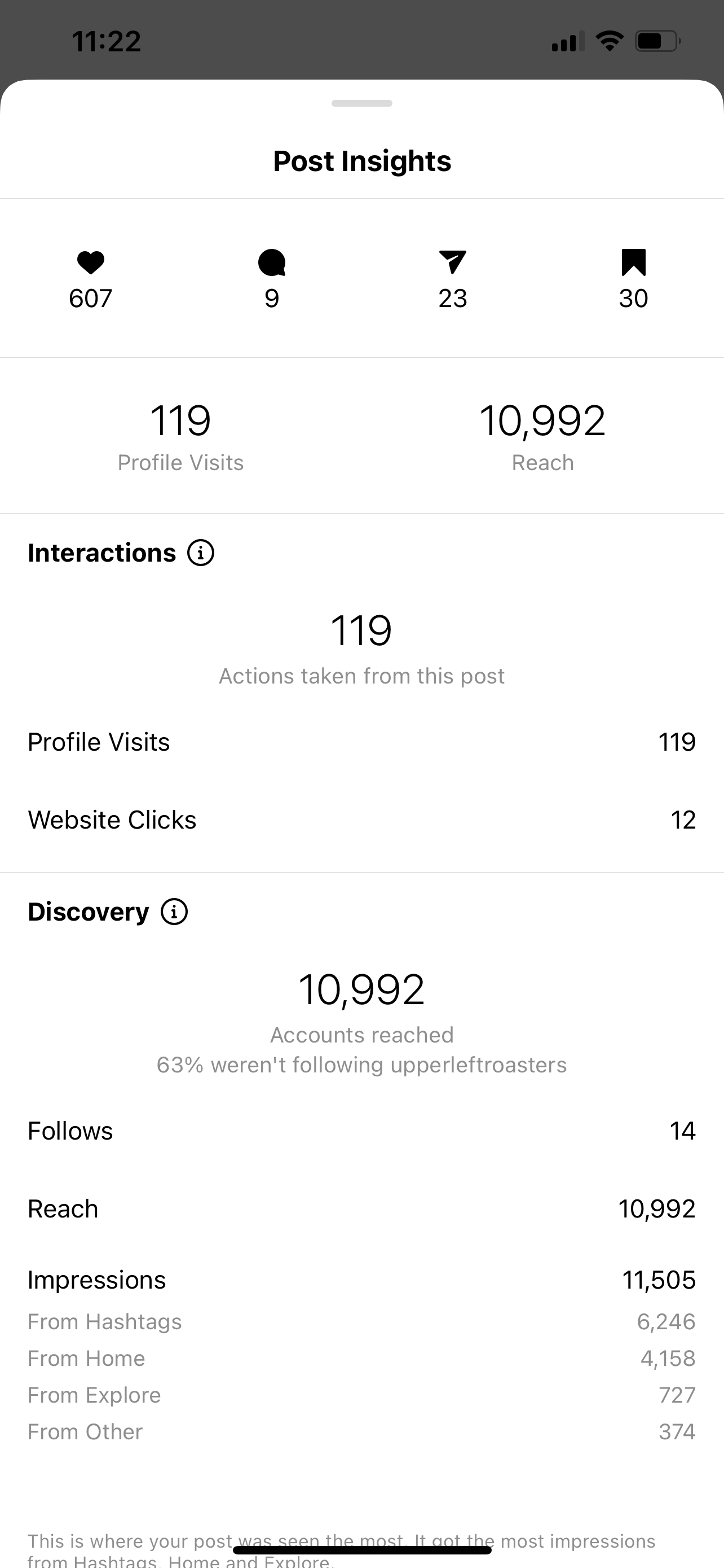 Upper Left Roasters (@upperleftroasters) is a local coffee shop from Portland, OR. As the current Social Media Manager for the company, I overlook the current trends, visualization of the feed, weekly content calendar planning, in house photography and engaging to our followers through direct message and comments. I have successfully increased our followers count by 1500+ since I started October 2020. Additionally, our overall Reach has gradually increased by using organic marketing methods.